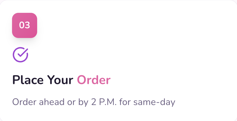 Orders must be placed by 2:00 PM on the day of delivery.